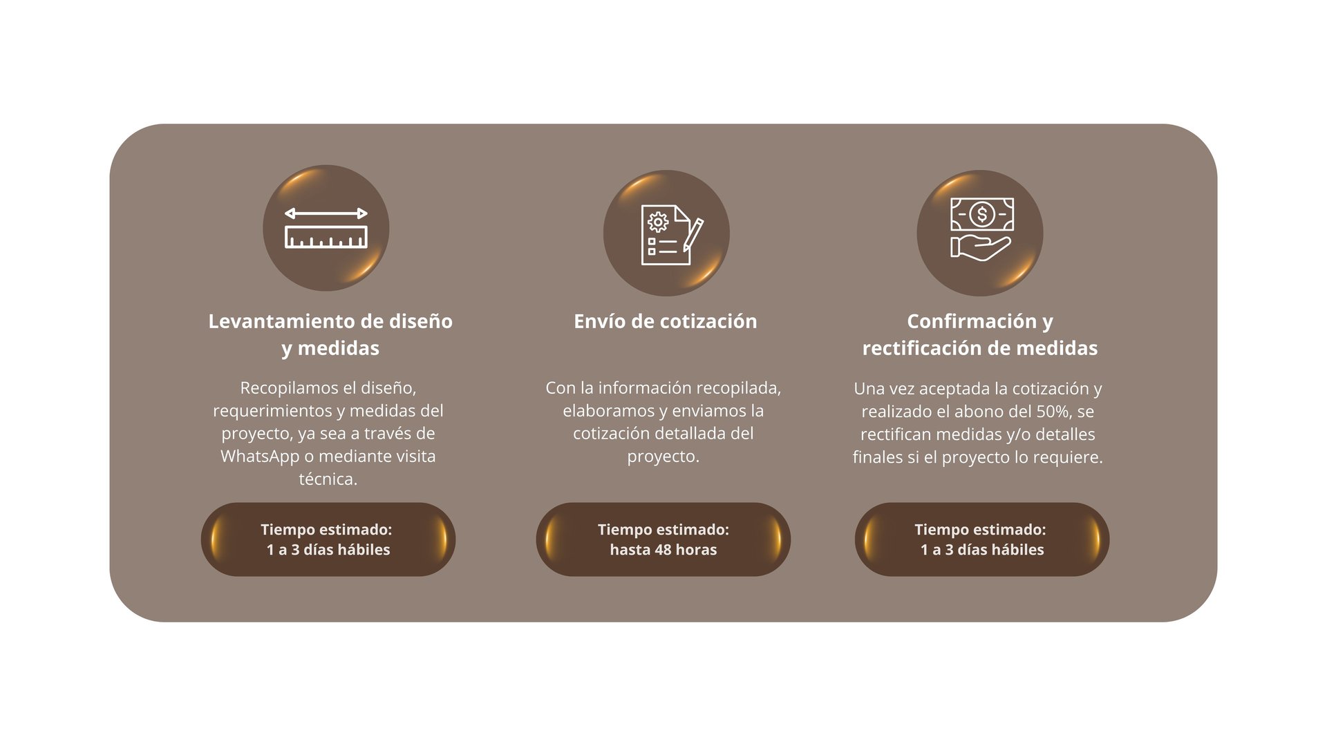 Nuestro equipo especializado realiza visitas técnicas a domicilio para comprender tus necesidades y tomar medidas precisas del espacio donde se instalarán los muebles. Esta atención personalizada nos permite garantizar un resultado óptimo y la máxima satisfacción del cliente.